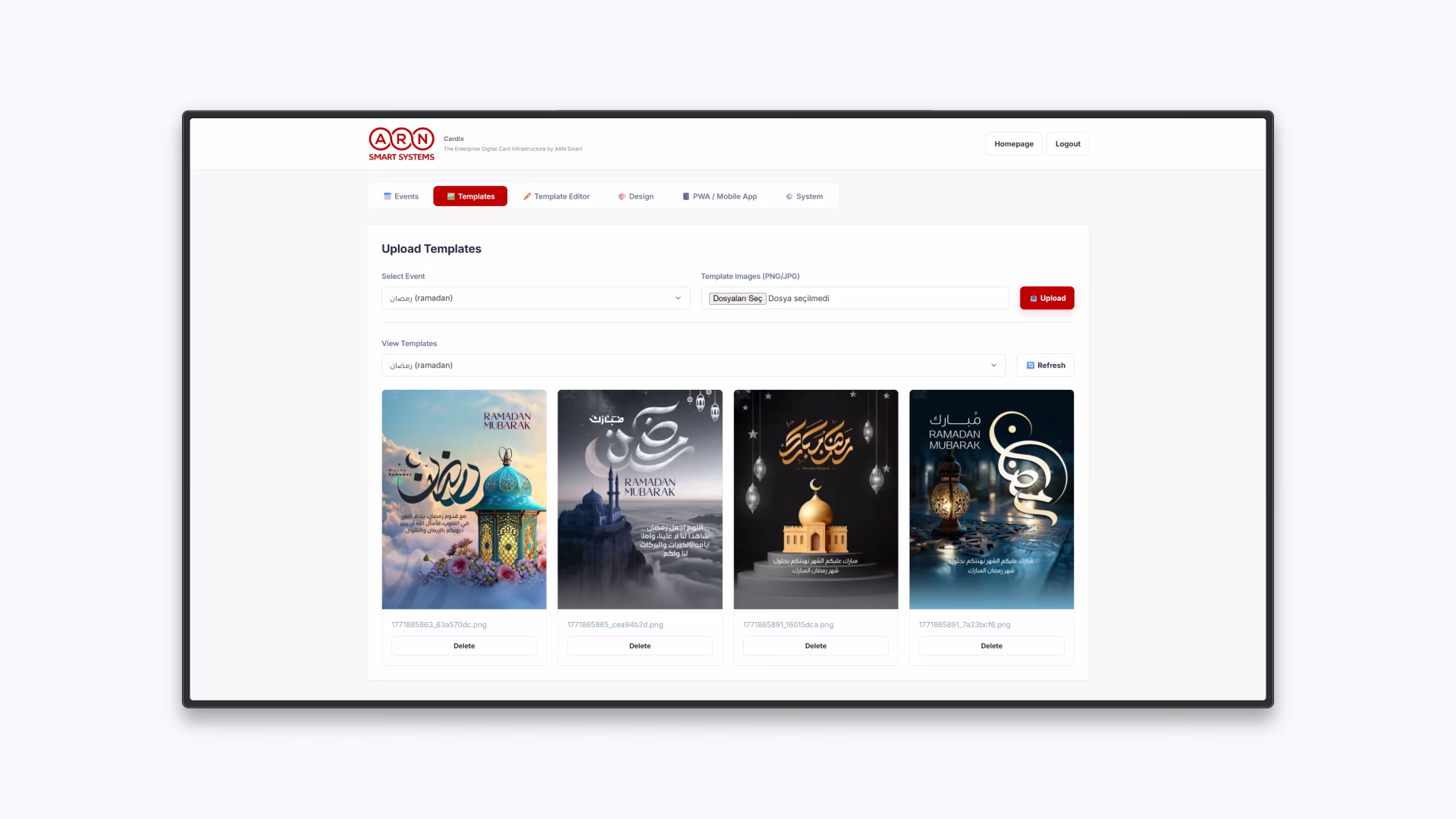Design, manage, and generate event-based digital cards with precision. Simple to use, powerful to scale.